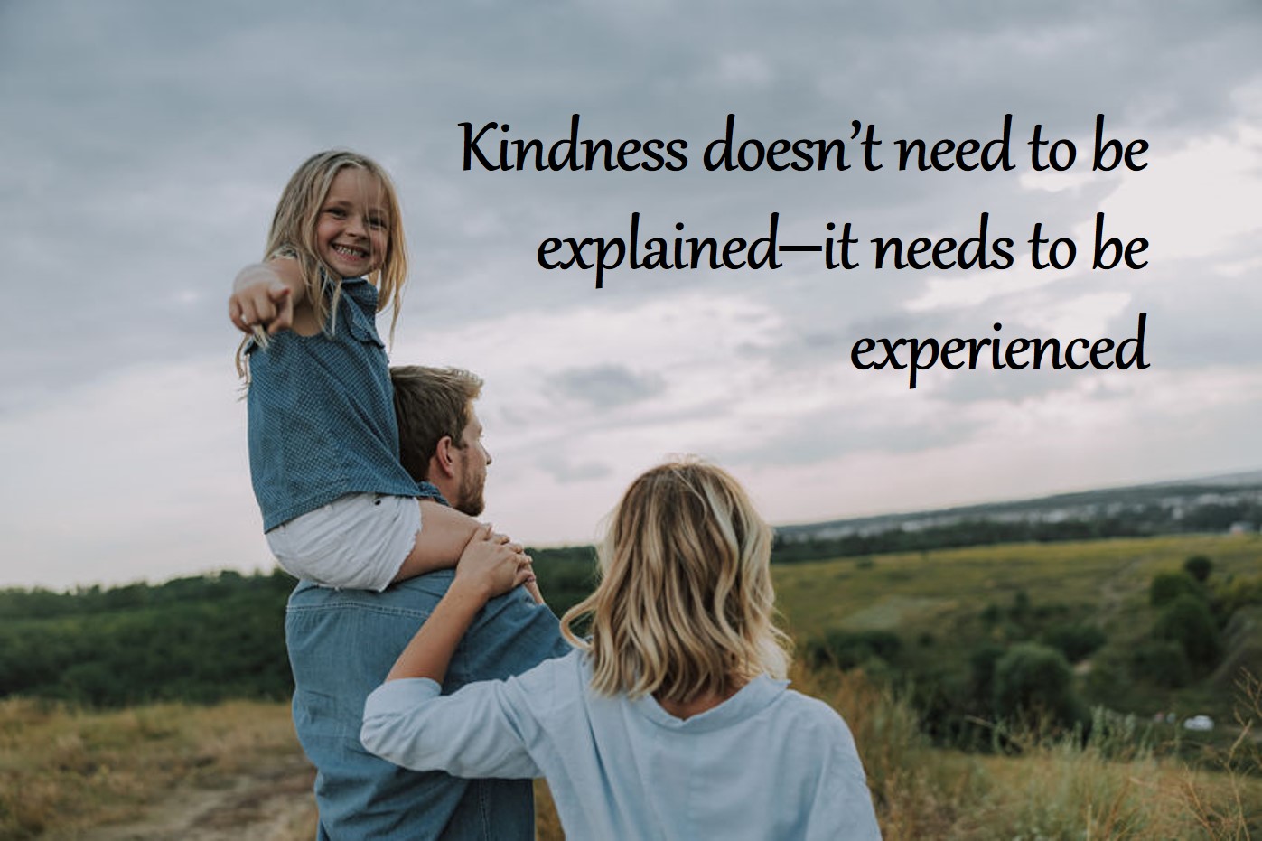 Kindness is experienced in how we treat others. God’s Word is filled with admonitions to treat others properly: Be gentle and gracious and loving. Be sweet. Be respectful. As parents, we can easily point out the importance of these matters to our children. Sometimes, however, it is easy to forget that these commands are just as important for us as adults. Are we sweet in the way we treat our spouses? Are we gentle in the way we respond to our children? Are we kind when our children can’t find their shoes or are slowing us down? Kindness is revealed when we are patient and considerate. Our children may very well slow us down or lose their shoes at the most inopportune times. Our spouses may not listen as well as they should or may be inconsiderate in some way. We are still to treat them with kindness, patience, love, gentleness, sweetness—and undeniable love!